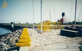 links:"Yellow schwimmt nicht gerne", links unten und unten: "Gelbe Stühle und Wunschkisten auf der Mohle", rechts:"Umweltagendarunde"