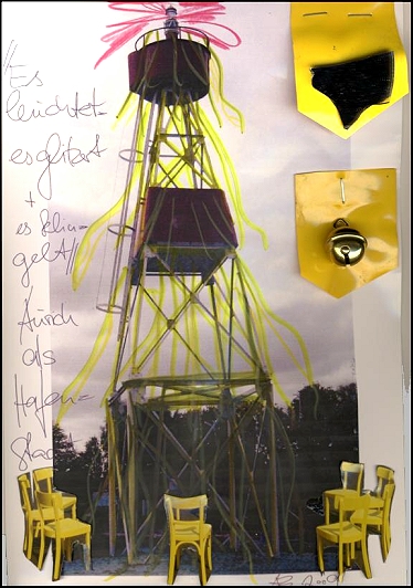 Installation/Happening als Pendant und Ergänzung zu den Schiffen mit ihrem Geglitzer und Geklapper und Leuchten im Licht und im Wind. |