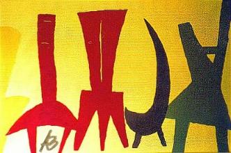 | 1998, Acryl/Lw. 90 x 180 | "Tiradisches Ballett", Öl u. Acryl/Lw. 100 x 120 | ||